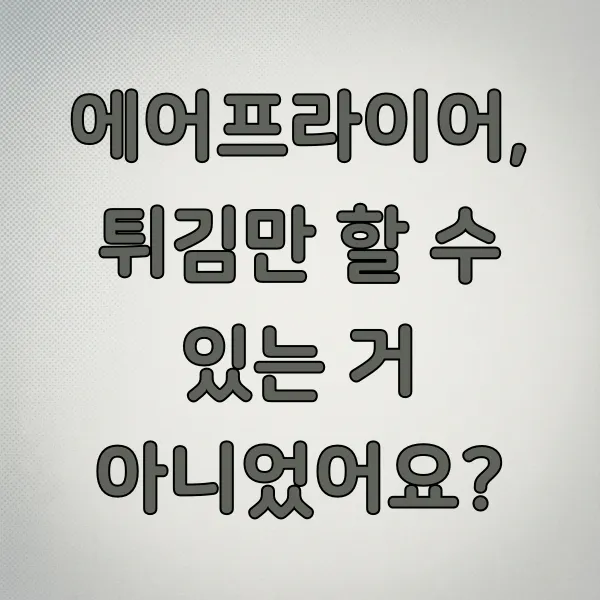 Q. 기름 없이 정말 바삭하게 요리되나요? A. 네, 뜨거운 공기를 순환시켜 조리하는 방식이라 기름 없이도 충분히 바삭한 식감을 낼 수 있어요. 처음엔 조리 시간을 조금 조절해보면서 원하는 식감을 찾아가는 재미도 있답니다.