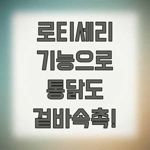 - Q4: 로티세리 기능은 어떻게 사용하는 건가요? A4: 닭이나 고기 같은 식재료를 전용 꼬치에 꽂아 본체 안에 넣고, 로티세리 모드를 선택하면 돼요. 기기가 알아서 재료를 회전시키면서 골고루 익혀준답니다.