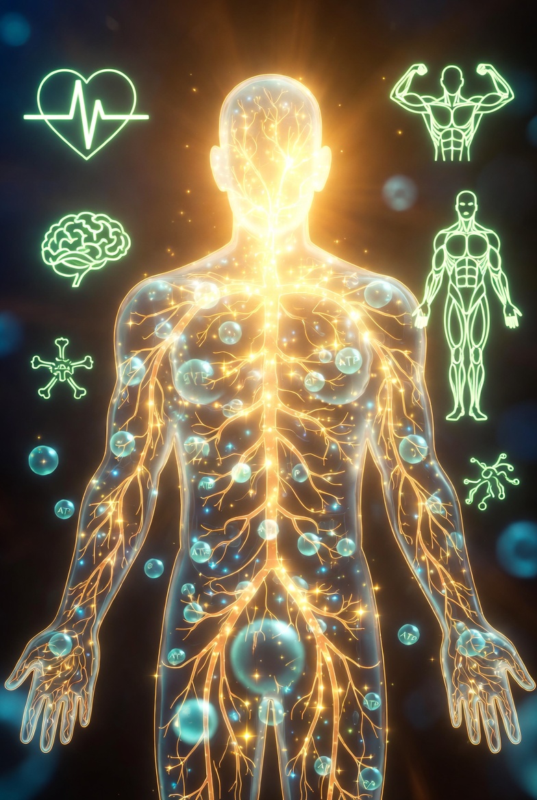 가장 중요한 효능! 마그네슘은 ATP(아데노신삼인산)라는 에너지 분자를 만드는 데 필수적입니다. 몸에서 만들어진 에너지를 사용하려면 반드시 마그네슘이 필요한 것이죠! ⚡