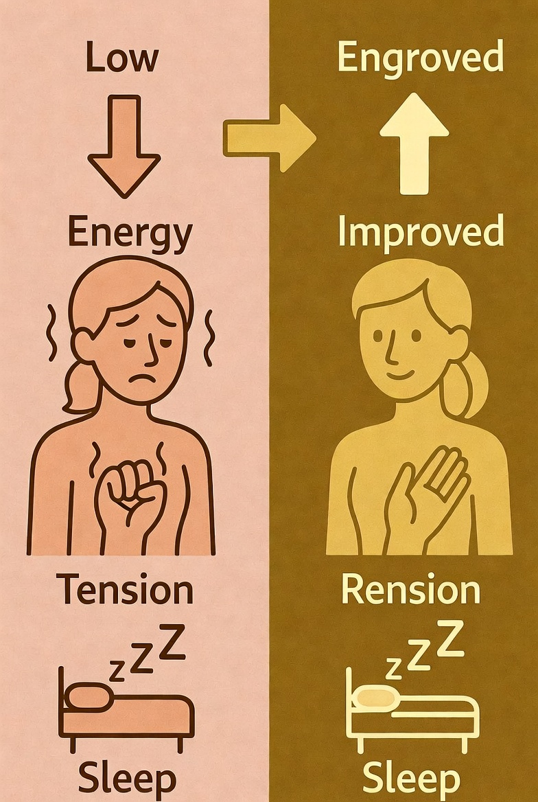 마그네슘이 부족하면 피로감이 계속되고 활력이 떨어집니다. 충분한 마그네슘 섭취는 일상의 활력을 되찾는 데 가장 직접적인 효과를 봅니다.